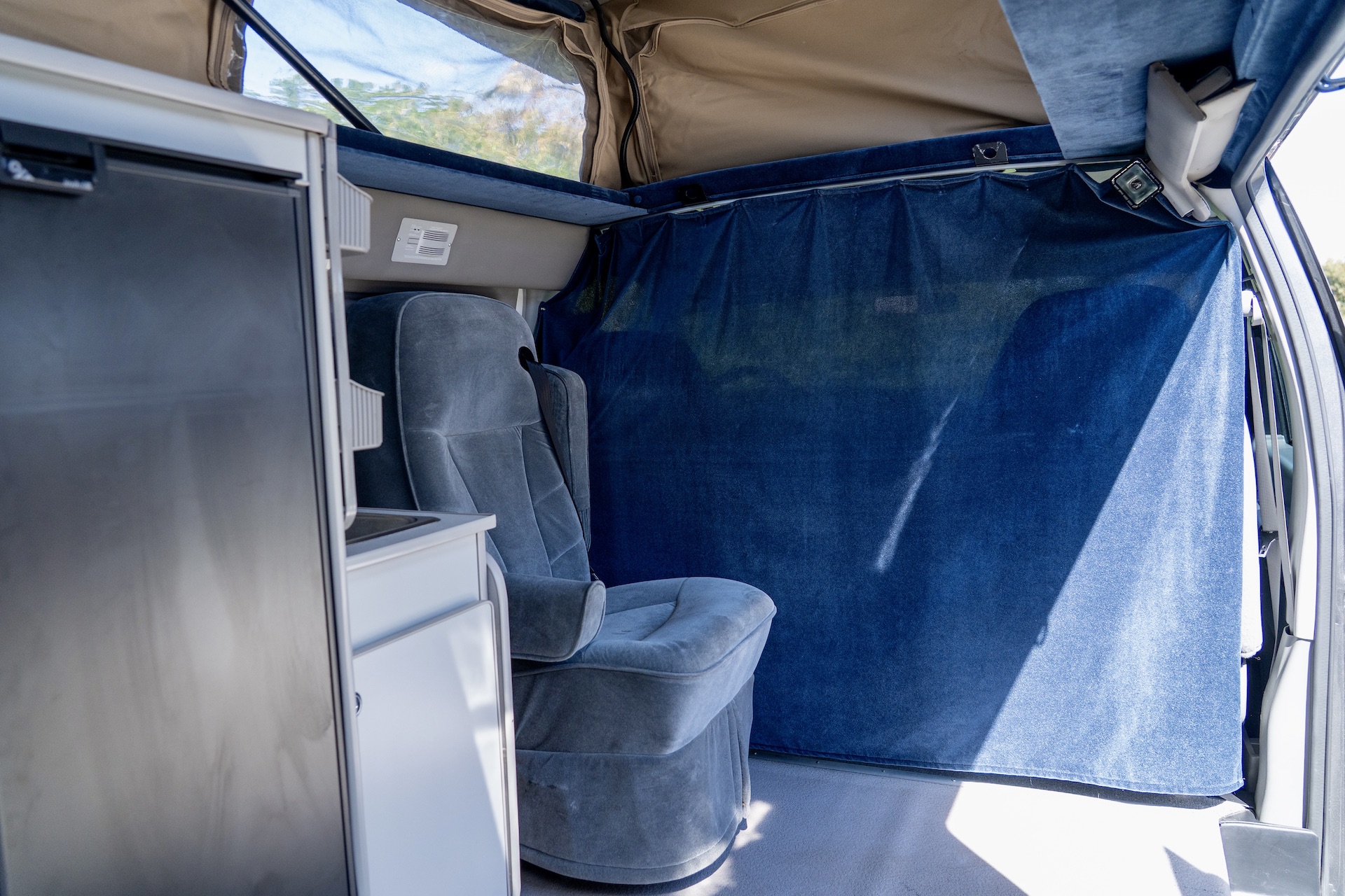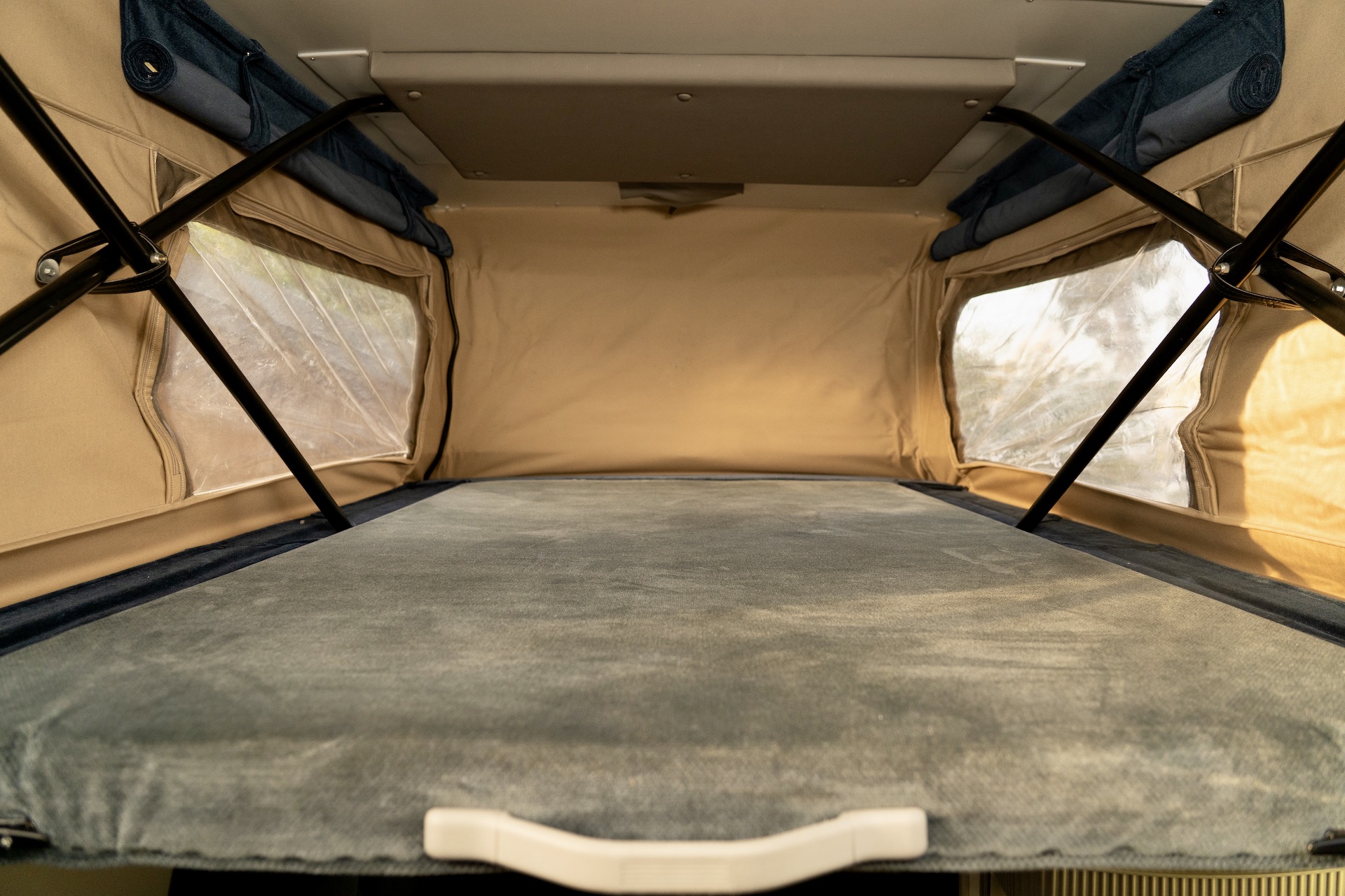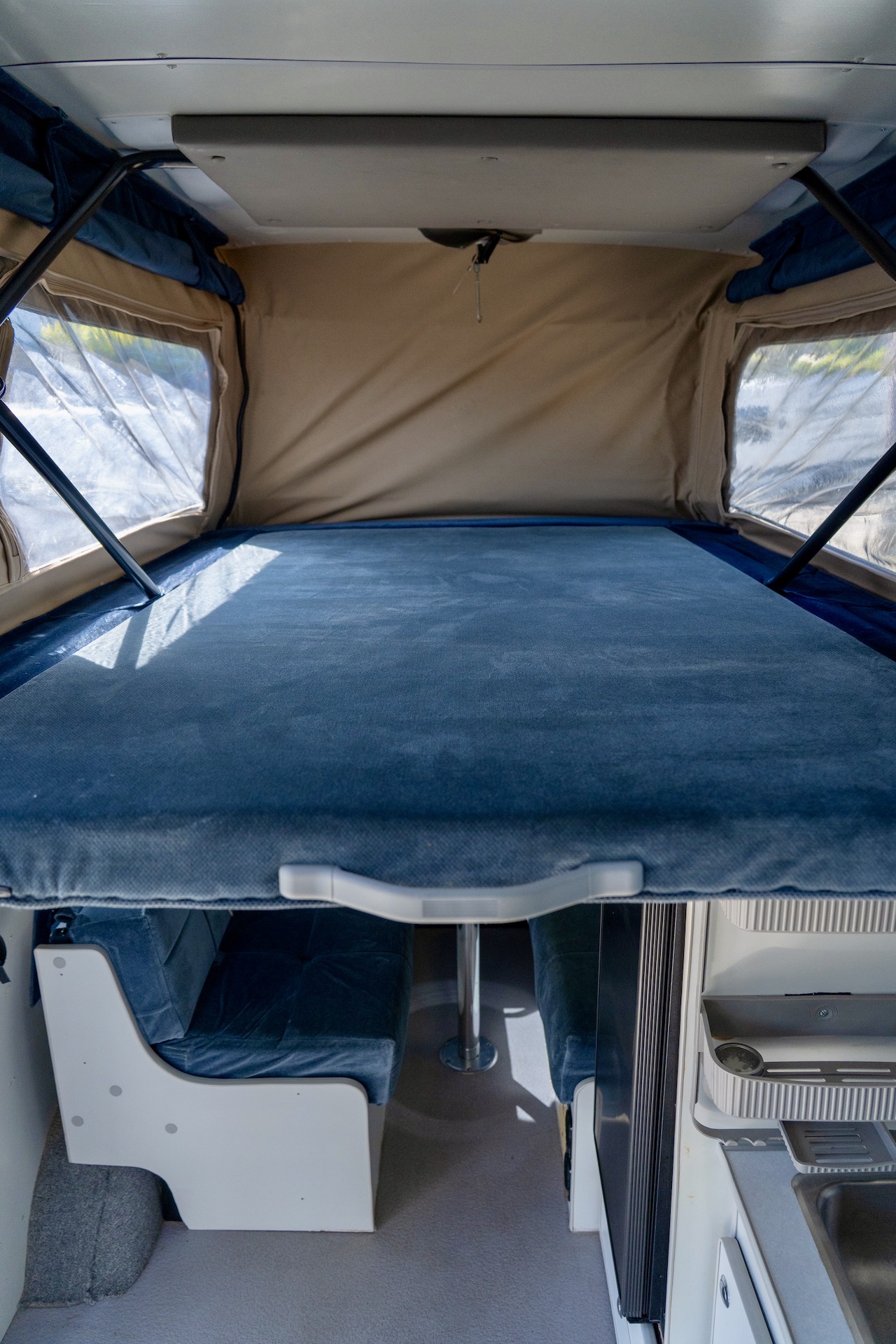 Large bed in the pop-top roof.